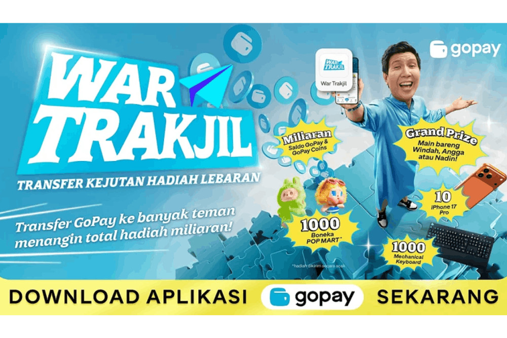 Sambil menunggu Lebaran, momen puasa bisa lebih meriah dengan ikut War Trakjil dan Transfer-transferan bareng keluarga, teman, atau kerabat. Campaign dari GoPay membuat aktivitas transfer uang menjadi pengalaman sosial yang interaktif lewat gamifikasi. War Trakjil sangat mudah diikuti. Cukup melakukan transfer dan langsung mendapat kesempatan menang hadiah. Setiap kali transfer dengan GoPay, Anda akan mendapatkan GoPay Coins dan potongan puzzle acak. Puzzle ini bisa dikumpulkan untuk membuka berbagai hadiah bertingkat. Semakin sering transfer, semakin lengkap puzzle, semakin besar peluang menang hadiah utama.