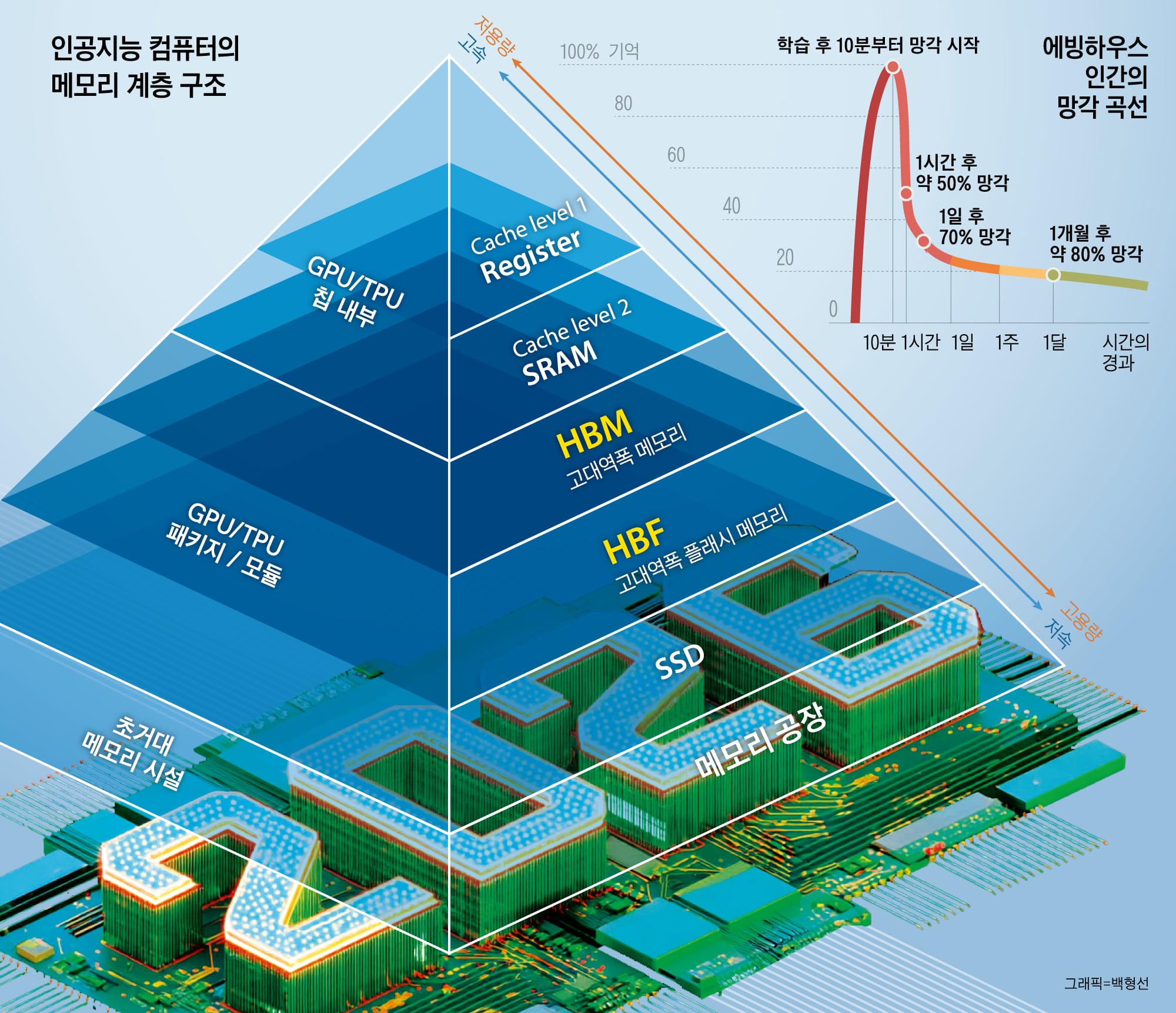 Peradaban manusia telah menciptakan berbagai metode untuk mengatasi keterbatasan kurva lupa. Dari mural yang diukir pada batu hingga surat, ukiran, arsitektur, buku, foto, video, dan aplikasi catatan ponsel pintar modern. Mereka telah bertahan terhadap angin dan hujan, menjaga kenangan dan pikiran manusia selama ribuan tahun dan meneruskannya kepada generasi berikutnya. Akhirnya, dengan munculnya era kecerdasan buatan (AI), "memori semikonduktor" mulai menggantikan kurva lupa manusia. Semikonduktor merekam setiap momen, dan data dalam memori semikonduktor dapat disimpan selamanya tanpa masa kedaluwarsa. Seperti penyimpanan ingatan abadi bagi peradaban manusia. Jika seseorang ingin melihat pikiran manusia dan sejarah kehidupan ribuan tahun kemudian, mereka hanya perlu mengambil catatan yang tersimpan dalam memori semikonduktor. Dengan cara ini, memori semikonduktor secara inheren memiliki "ketakterbatasan," "keabadian," dan "kedekatan." Itulah sebabnya semakin menjadi pusat dalam pembelajaran dan penghasilan AI.