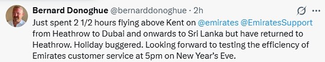 Pesawat Emirates dari Heathrow ke Dubai terpaksa mengitari atas London selama satu jam pada malam Tahun Baru.